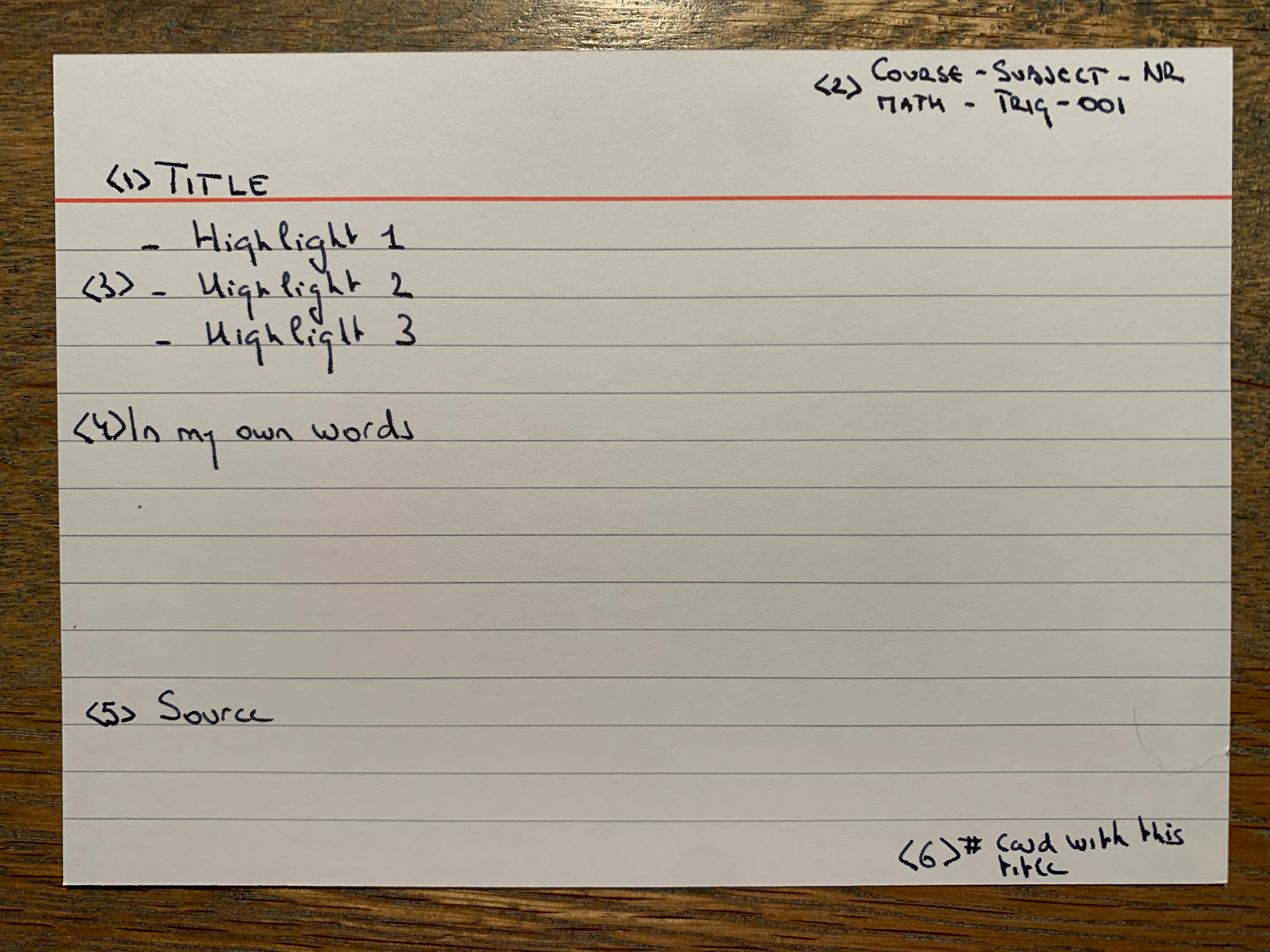- Now, copy that highlighted information on an index card. I'll describe the index card below. Then put these elements around the specific subject in your own words.