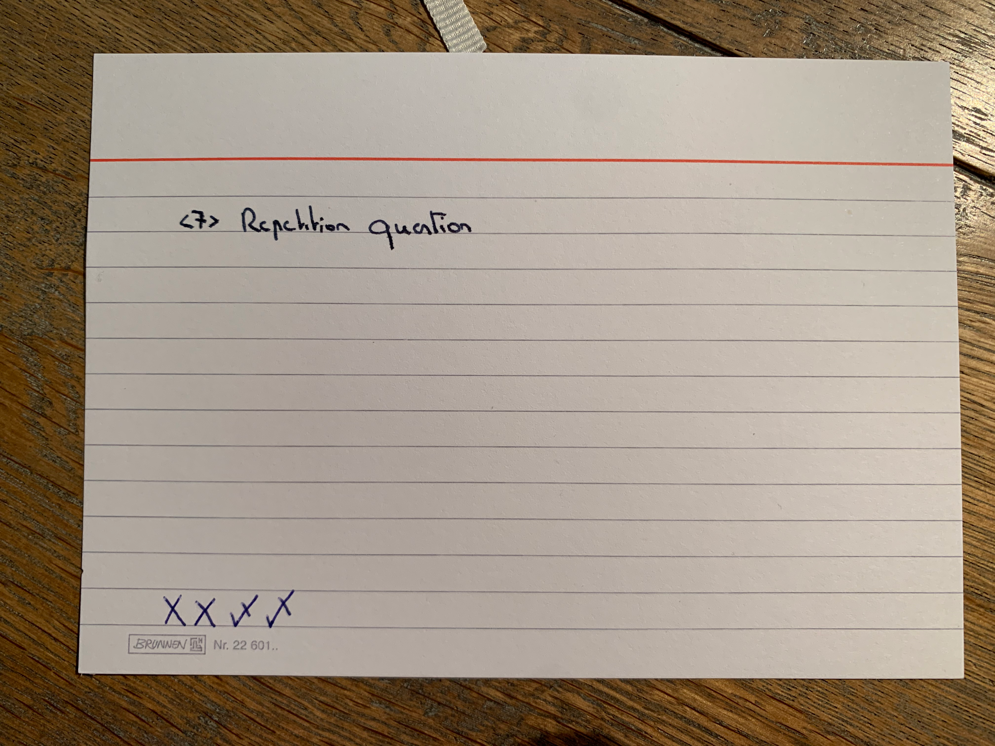 Every day you pull out 10 cards at random from the stack for the course you are repeating, and you read the question on the back side of the index card and try to answer the question. Ideally you write your answer down. Then look at the answer. If you answered correctly, reward yourself with a positive thick mark and put the card at the back of the stack for that course. If you did not answer satisfactorily, put a cross on the question side of the index card and put it back in the pile of questions you need to repeat.